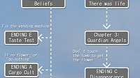How to get all the endings After turning off the alarm in Chapter 1, choose "Stay inside". Pick up the battery near the gate and the coin in the flower fields and go to the beach. Use the battery and...